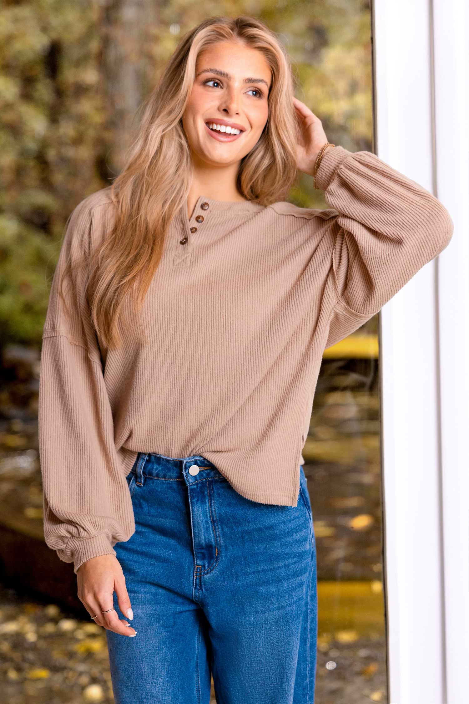 ¡La blusa Latte Swirl Beige se convertirá en tu nueva favorita para estar cómoda! Su cuello redondo, corte holgado y mangas largas la convierten en una opción fácil para días relajados y con estilo.