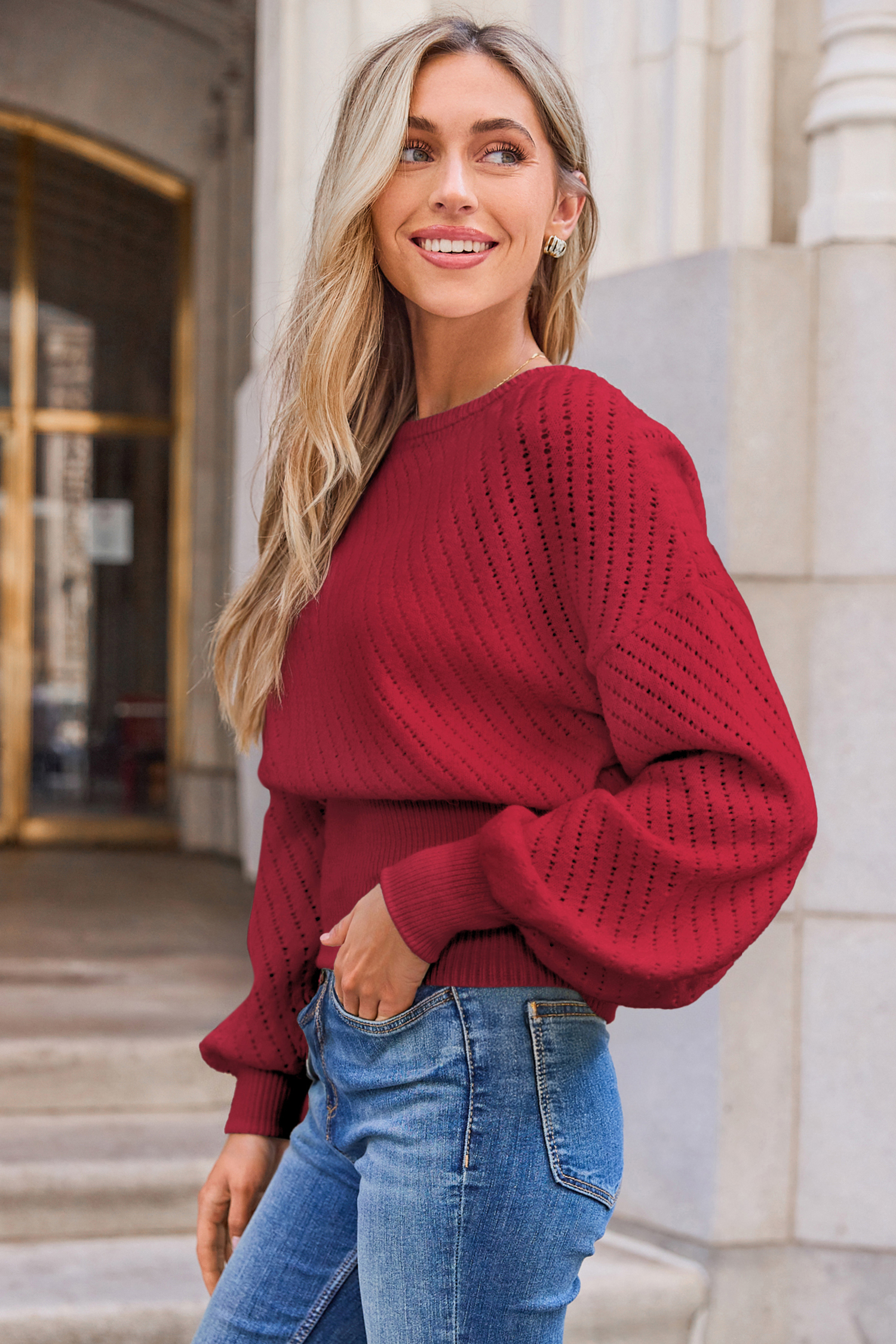 El suéter rojo "Nunca es tarde" aporta energía, seguridad y audacia a cualquier look. Su cuello barco, mangas largas y cintura ceñida crean una silueta moderna y favorecedora.
