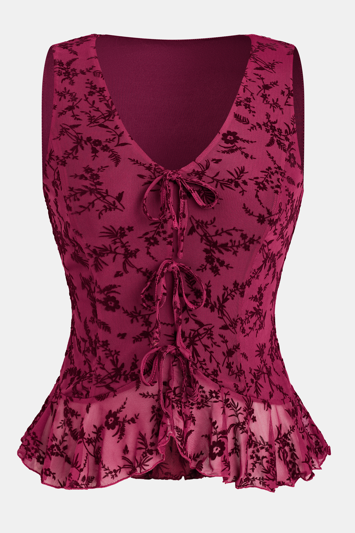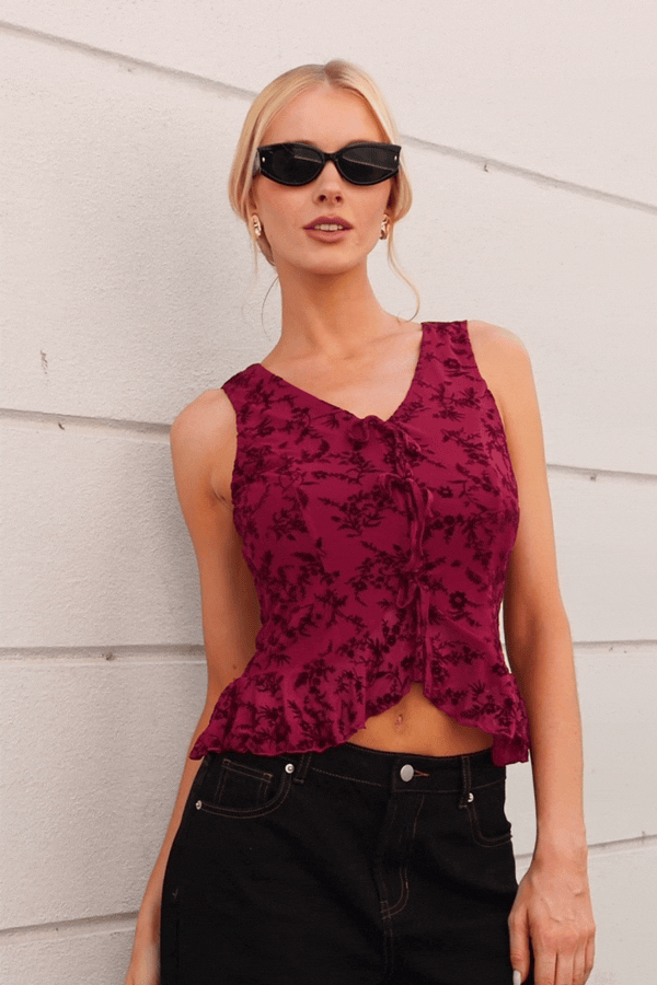 El top Paris es sinónimo de estilo desenfadado y detalles divertidos. Con escote en V, ribete con volantes y corte sin mangas, es perfecto para realzar cualquier look.